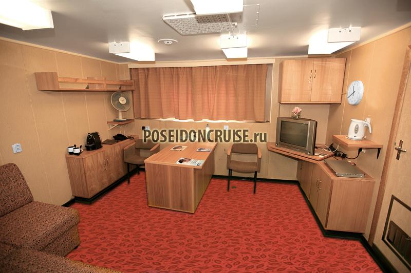 Отметим, что окна всех пассажирских кают открываются. У каждой каюты есть все удобства: отдельный душ, туалет и так далее.